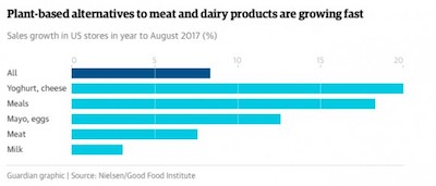 At the same time, sales of plant-based alternatives to animal products have been increasing across the board. Just check out the data GFI collected from Nielsen: